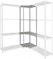 - Угловая полка – элемент, позволяющий рационально использовать всю полезную площадь помещения, установив стеллажную секцию в углу. С помощью угловых полок возможна сборка стеллажей «уступами», «ступеньками», «углом», «квадратом» и т.д.