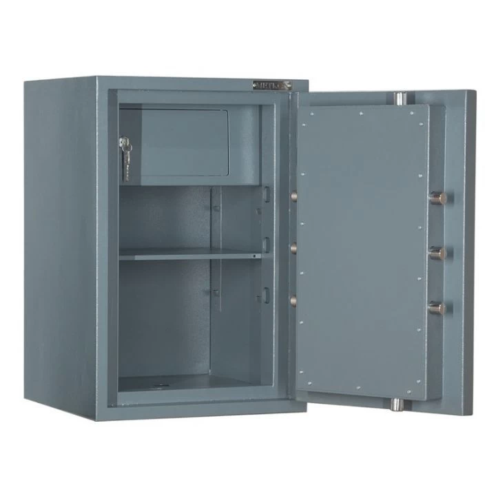 - А чтобы грабители не решили проблему взлома радикально, попросту похитив сам сейф, рекомендуется крепить его к полу, для чего имеется анкерный болт и специальное отверстие в дне.